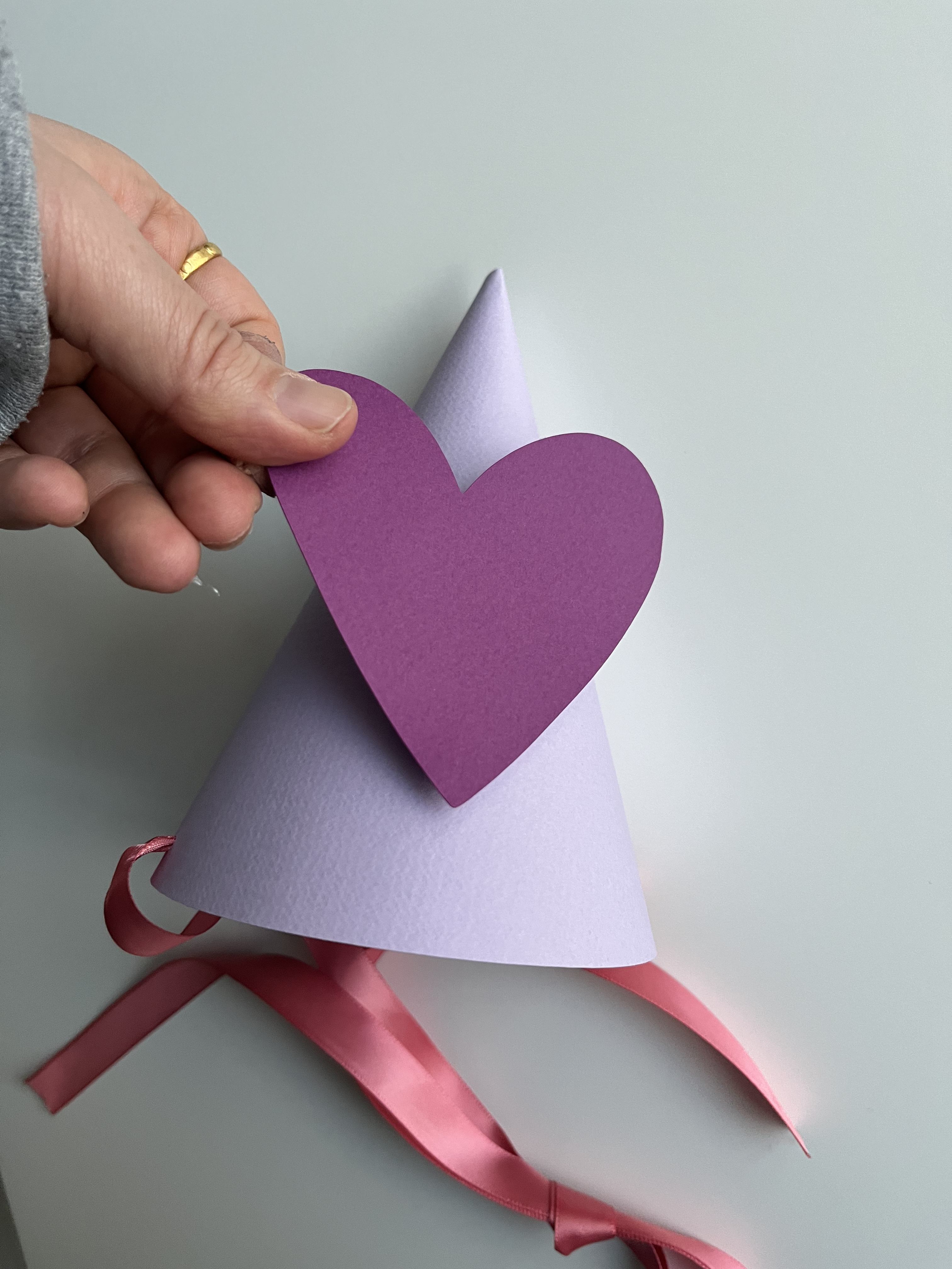 끼워서 고깔모자 모양을 만들어 주세요.