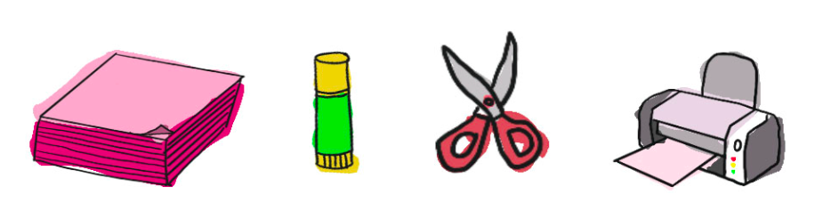 오늘의 준비물 : 꼬깔모자로 쓸 종이, 풀(글루건 또는 양면테이프 가능), 가위, 도안출력,
